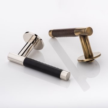 Joseph Giles - Infinity solid brass door lever handle with hand stitched leather & roseless rose LV1172 View Product